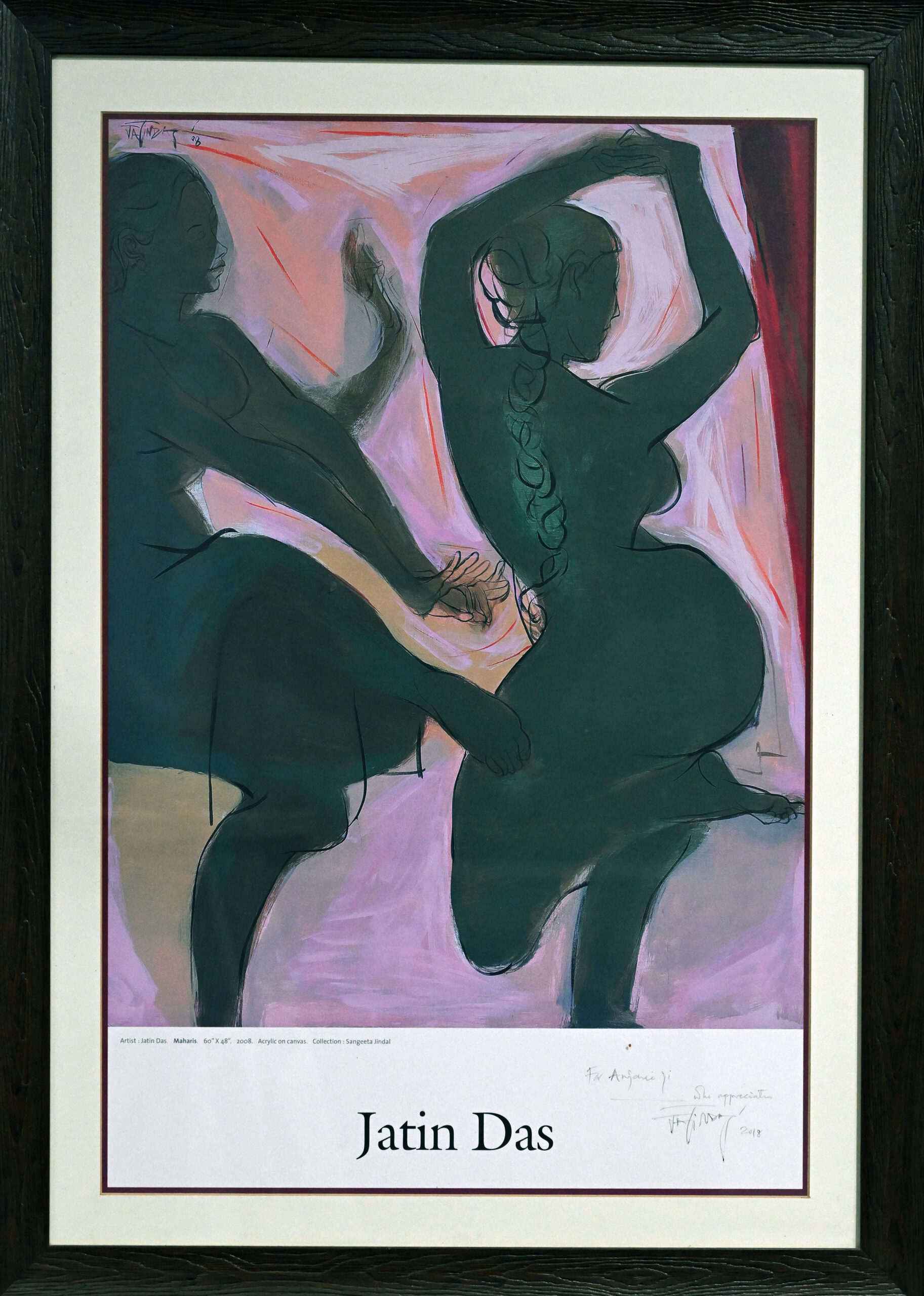 Two dancers curve and collide in fluid motion, their dark forms alive against a backdrop of swirling pink and red. The pastel curtain behind them ripples like breath, amplifying the rhythm of their expressive limbs. Each gesture is a brushstroke of emotion—raw, intimate, and suspended in theatrical grace. Jatin Das captures the soul of movement,…