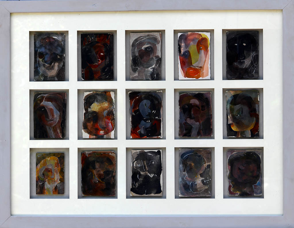 This expressive grid painting by Milan Das presents sixteen abstract faces, each rendered with unique emotion and texture, forming a collective portrait of human complexity. Dark backgrounds intensify the individuality of each panel, while splashes of red, yellow, and blue bring bursts of vitality and psychological depth. The structured 4×4 arrangement contrasts with the fluidity of expression, suggesting unity within diversity or the rhythm of shared experience. Das’s style—rooted in introspection and layered abstraction—transforms identity into a mosaic of memory, mood, and silent dialogue.