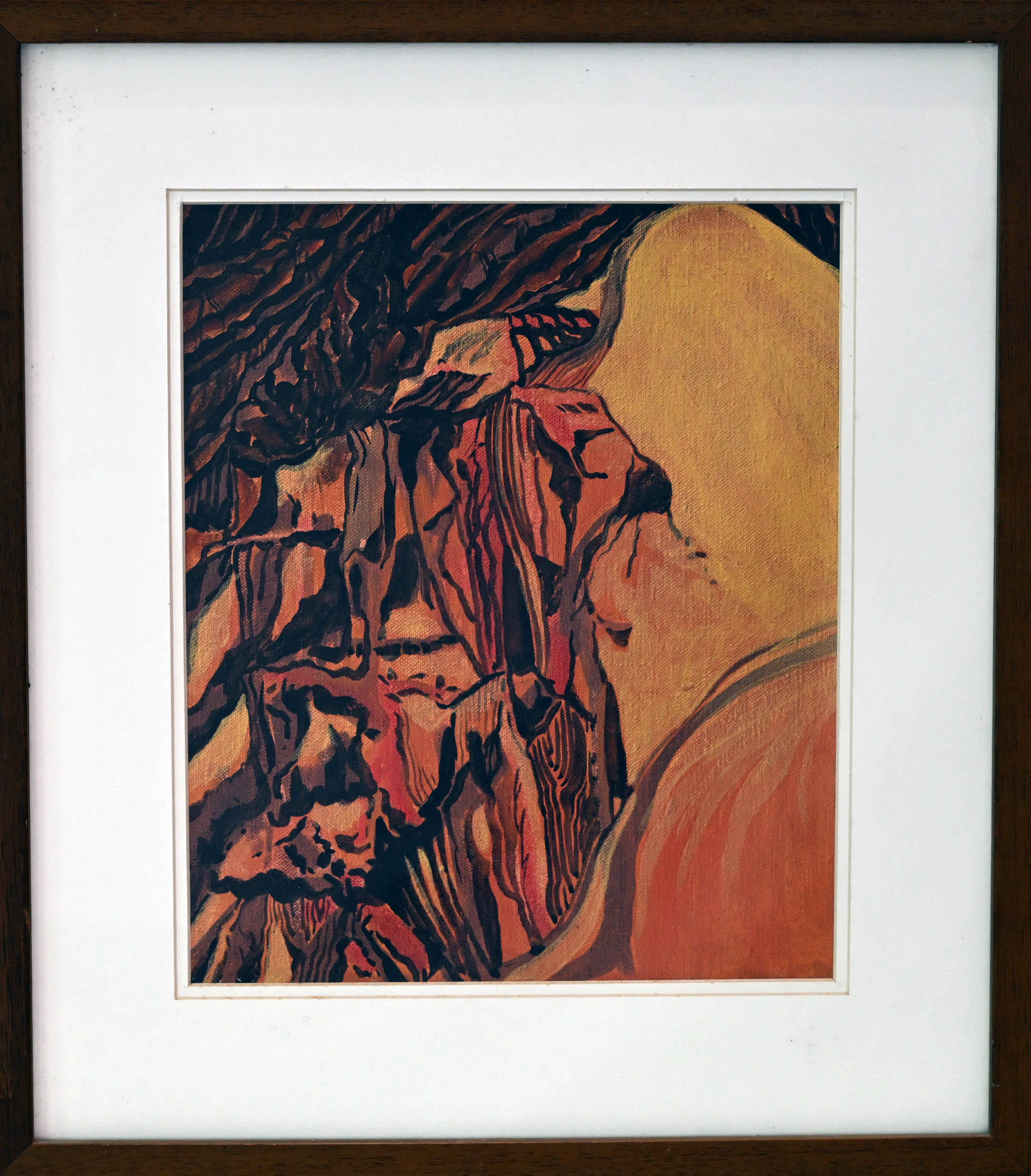 Layered striations of red, orange, and brown flow across the canvas like ancient canyon walls shaped by time. Bold lines and jagged contours evoke geological tension, where erosion becomes a language of movement and memory. The abstract composition pulses with earthy energy, balancing chaos and calm in sedimentary rhythm. This painting transforms landscape into emotion—each stroke a whisper from the depths of the earth.