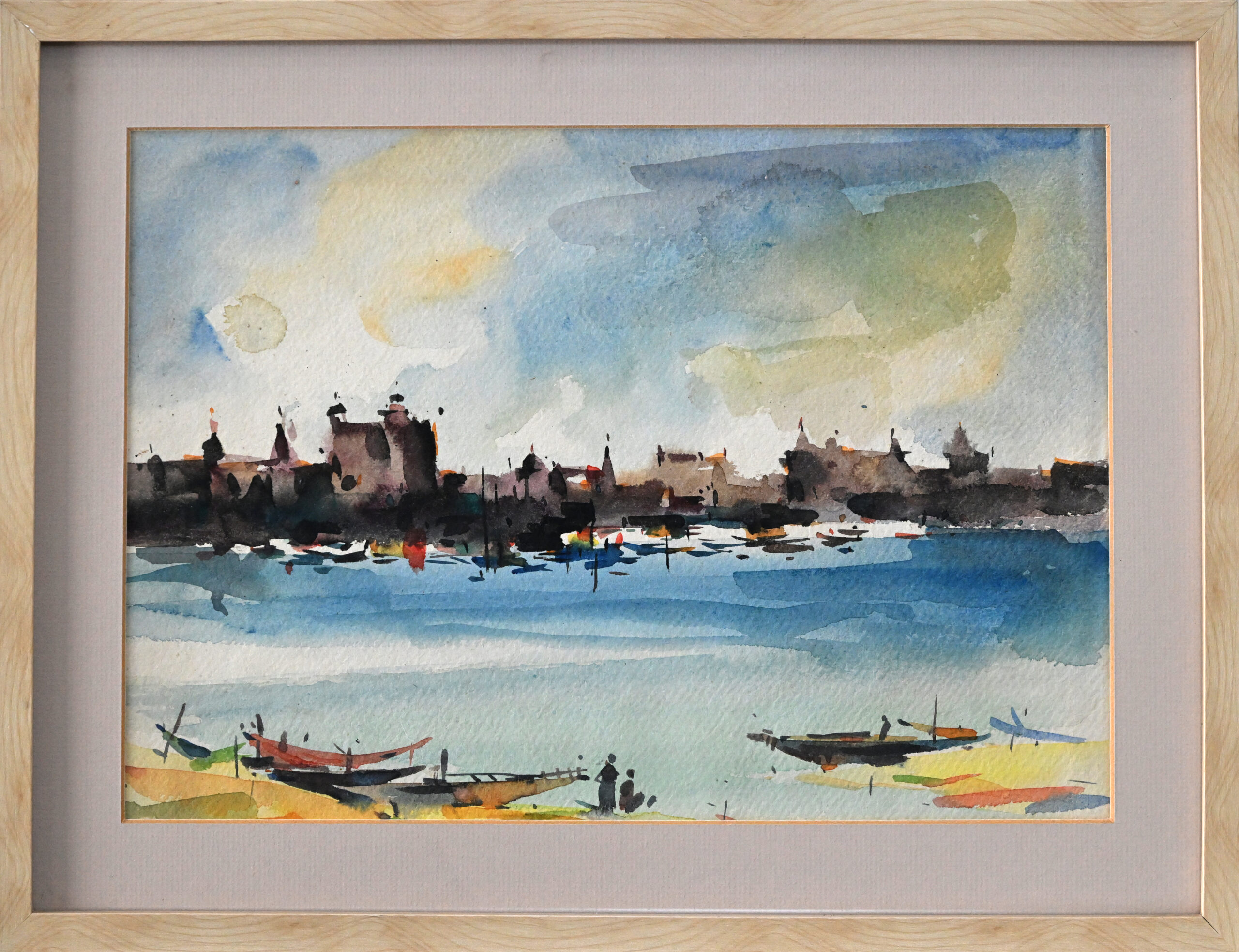 Vasudeo Kamath’s ink drawing unfolds like a visual meditation, where a stylized face emerges from the earth, entwined with birds and reaching hands. The elongated features and sparse lines evoke introspection, while the birds in flight suggest liberation, thought, and spiritual ascent. Each gesture and contour feels symbolic, bridging the human and the elemental in quiet harmony. It’s a contemplative composition—where stillness meets motion, and the soul communes with sky.