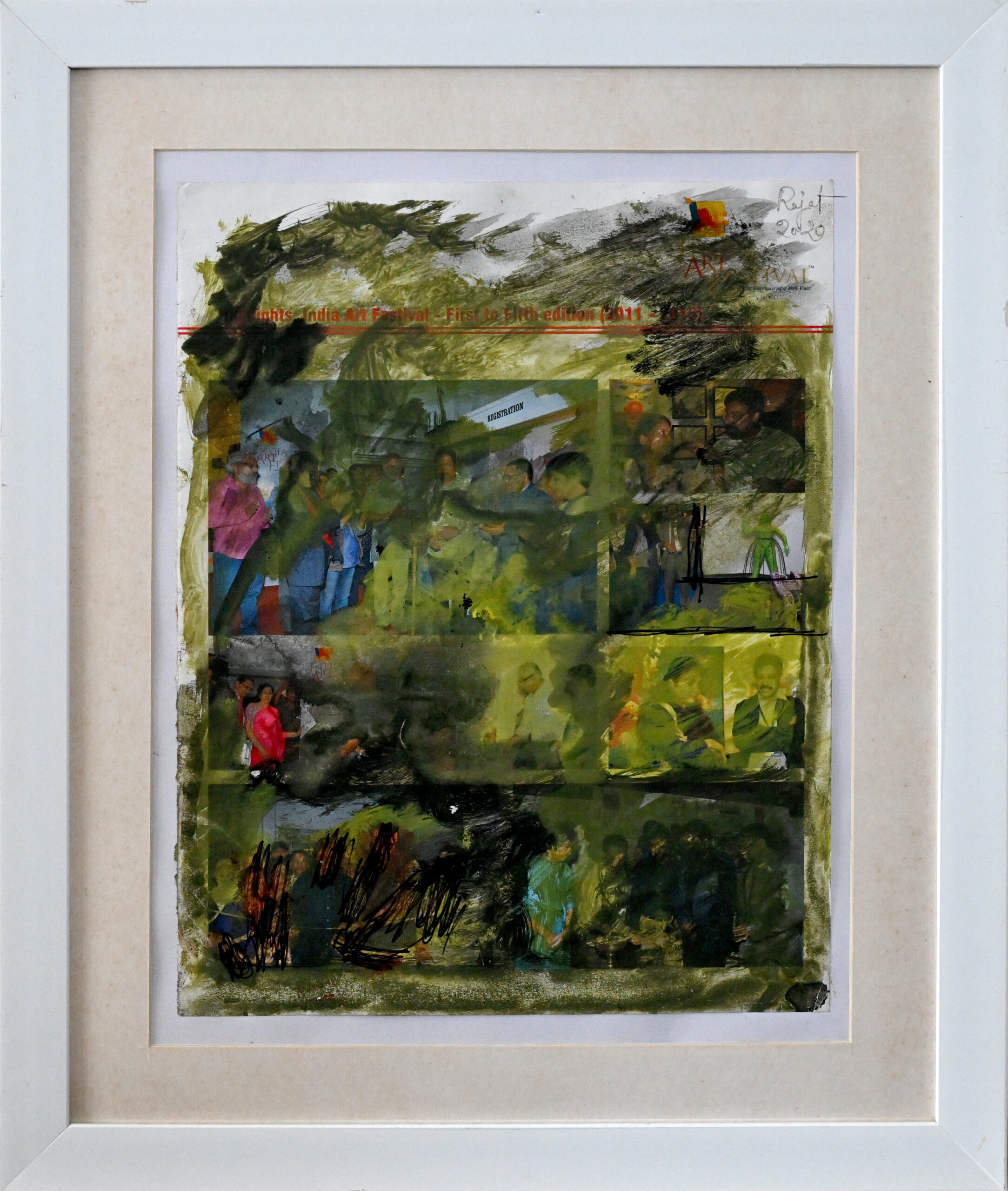Vasudeo Kamath’s ink drawing unfolds like a visual meditation, where a stylized face emerges from the earth, entwined with birds and reaching hands. The elongated features and sparse lines evoke introspection, while the birds in flight suggest liberation, thought, and spiritual ascent. Each gesture and contour feels symbolic, bridging the human and the elemental in quiet harmony. It’s a contemplative composition—where stillness meets motion, and the soul communes with sky.