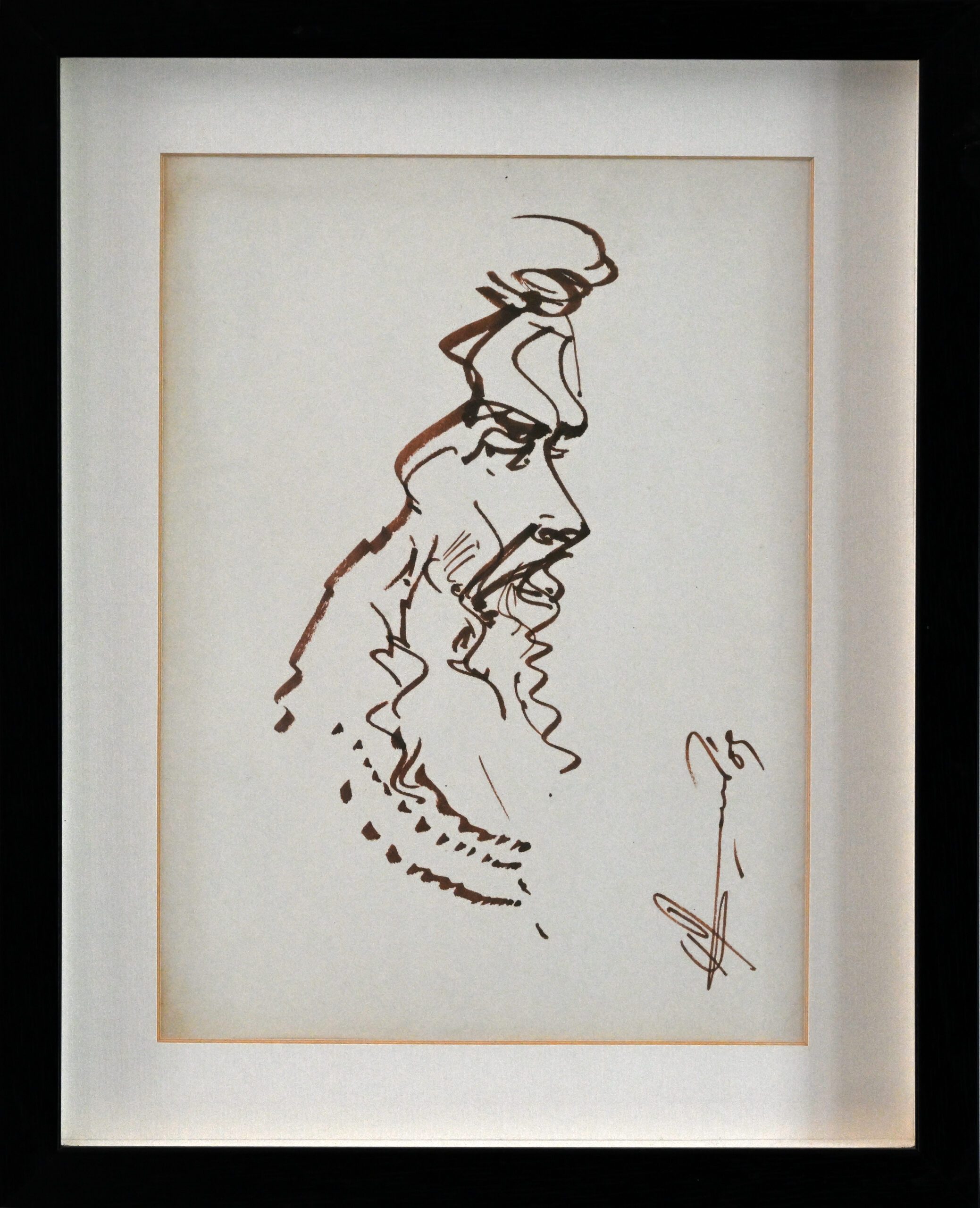Vasudeo Kamath’s ink drawing unfolds like a visual meditation, where a stylized face emerges from the earth, entwined with birds and reaching hands. The elongated features and sparse lines evoke introspection, while the birds in flight suggest liberation, thought, and spiritual ascent. Each gesture and contour feels symbolic, bridging the human and the elemental in quiet harmony. It’s a contemplative composition—where stillness meets motion, and the soul communes with sky.