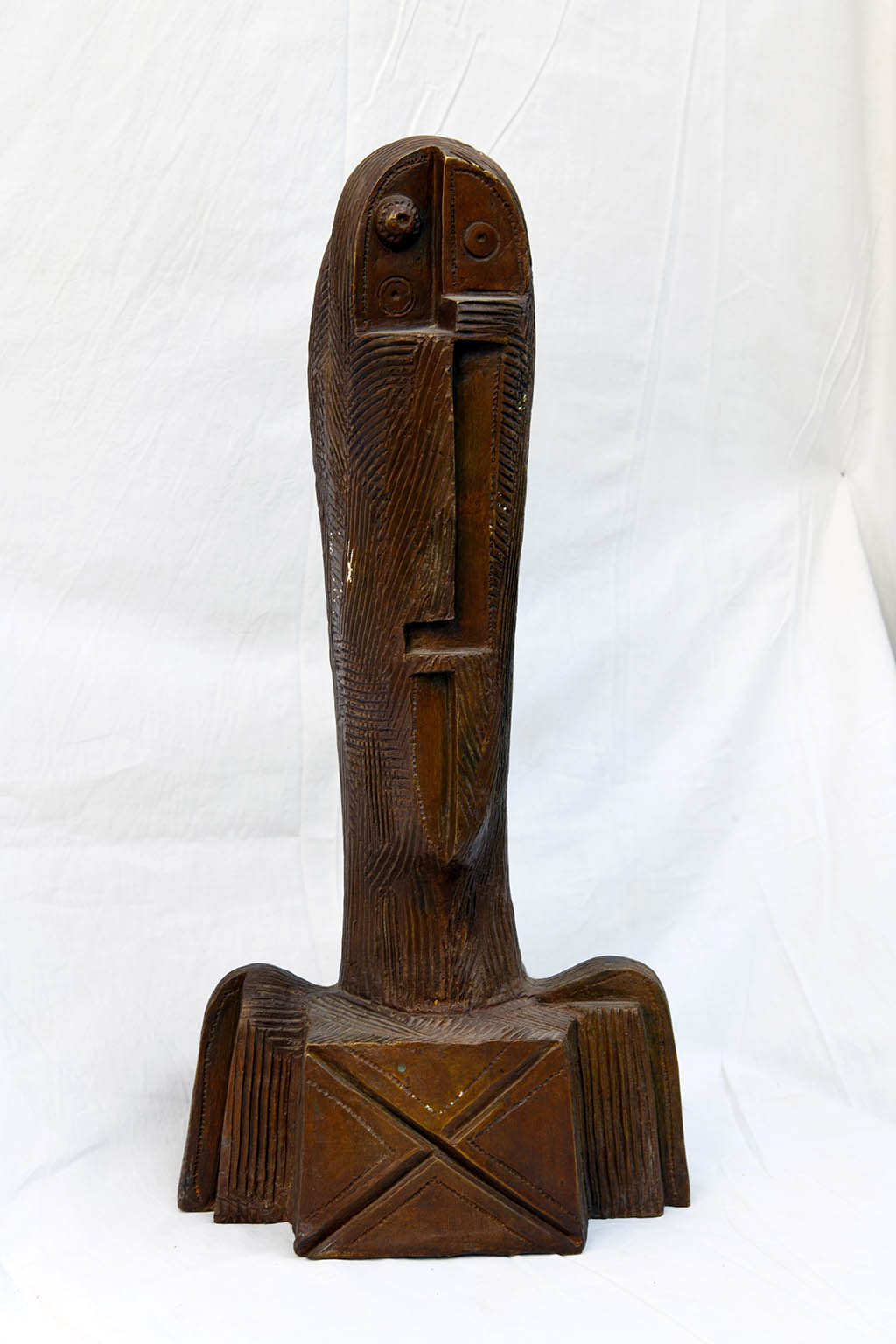 The sculpture’s verticality and material weight lend it a totemic aura, while its minimalist geometry suggests a modernist lineage tempered by primal memory. It is not a portrait, but a meditation—on identity, silence, and the enduring tension between form and void. In the context of Shah’s oeuvre, this head becomes a philosophical object: a sentinel of thought, a vessel of absence, and a monument to the inner life.